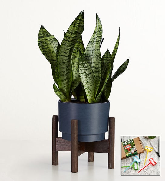 GROWN IN THE USA With its stiff, upright growth and glossy striped leaves, the Sansevieria zeylanica is a statement-making beauty. It’s also wonderfully easy to care for, able to thrive with little sunlight and watering. Ours comes in two sizes, and the medium includes a set of picks on which you can write your plant’s name, care instructions, or a special message.